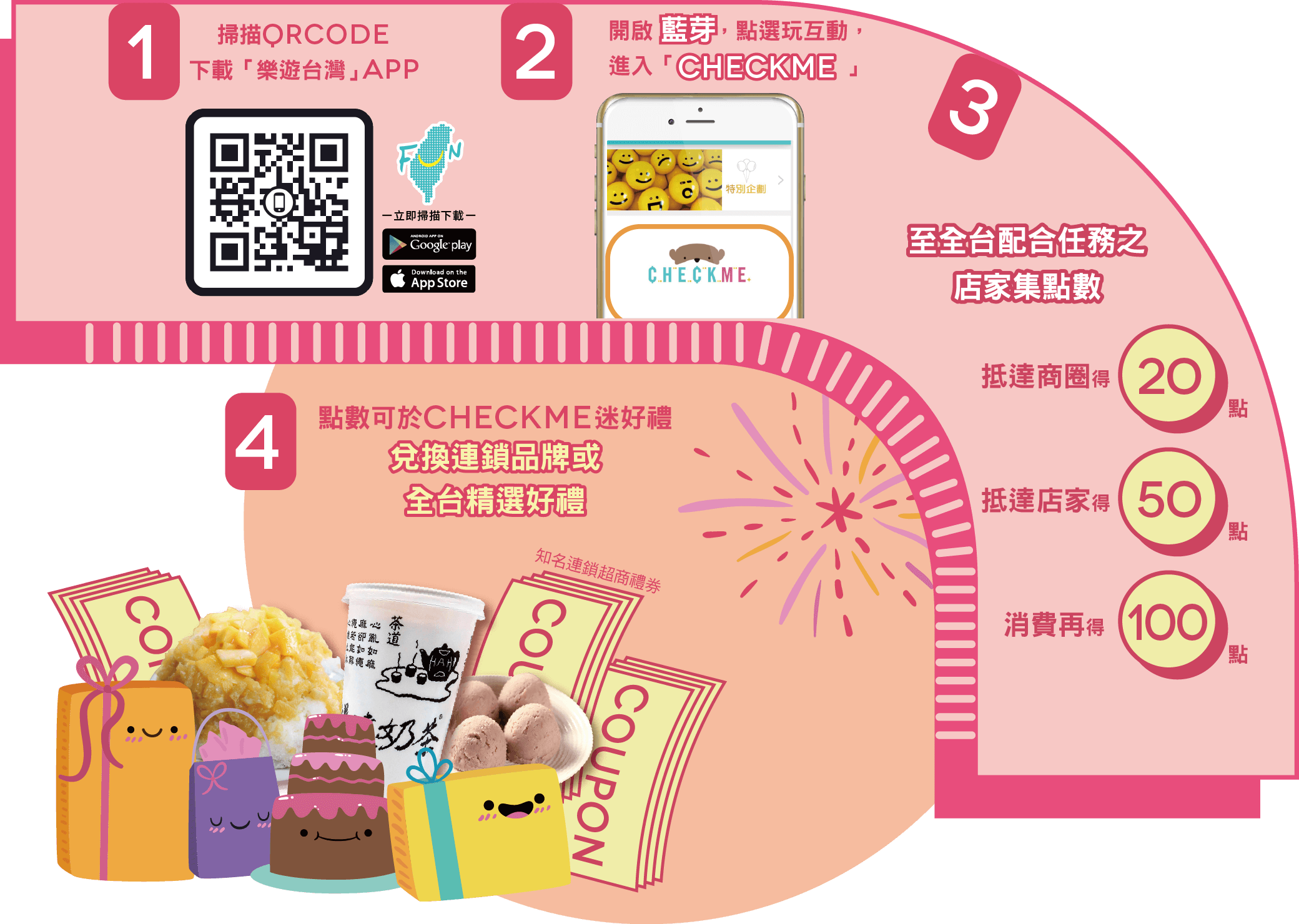 A:CHECK ME畫面正上方顯示擁有點數;點選右上「迷好禮」即可瀏覽可兌換之禮品 - Q:請問任務可重複執行嗎?